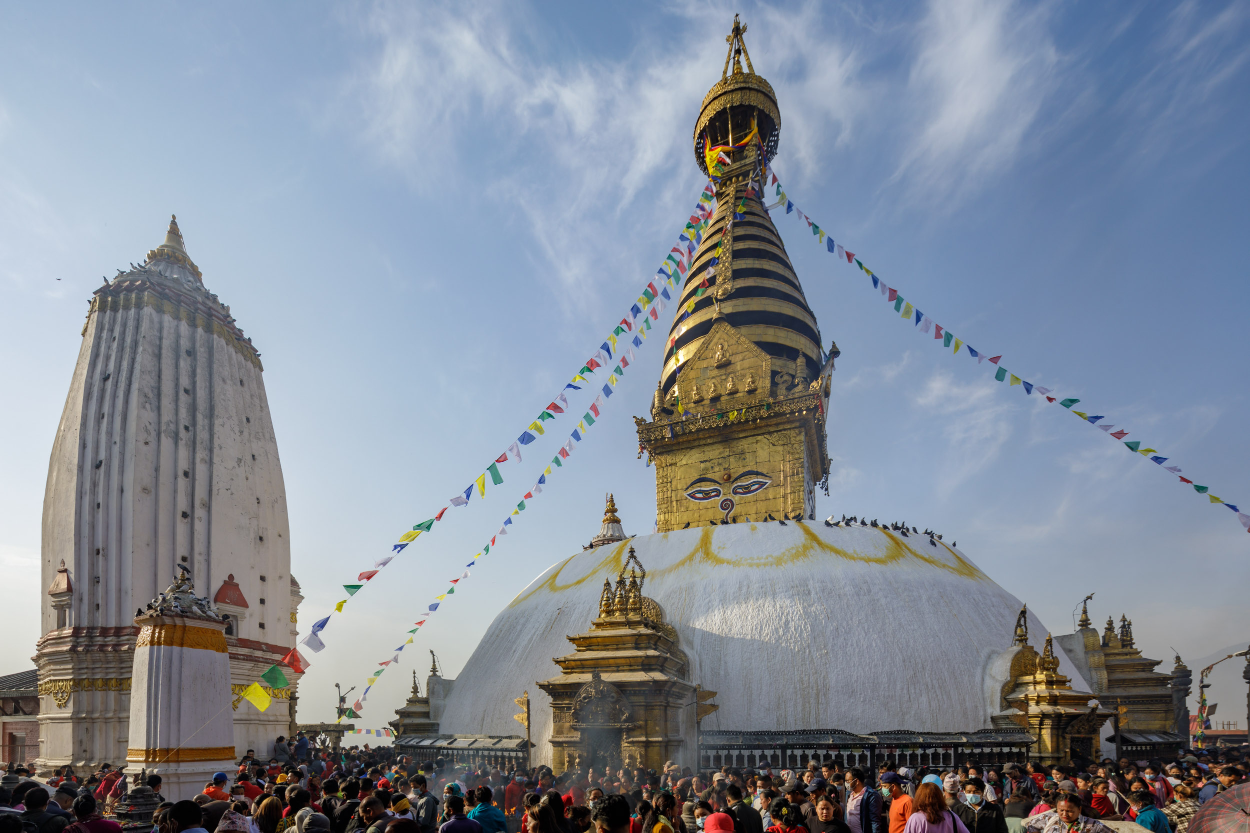 You’ll discover that Kathmandu is a city like no other. Nestled in the Kathmandu Valley and surrounded by rolling hills and the distant peaks of the mighty Himalayas, it serves as the cultural, political and spiritual heart of Nepal. The photos of Kathmandu you will find here highlight the city’s distinctive blend of Hindu and Buddhist influences. From the towering spires of ancient temples to the prayer flags fluttering in the wind, the architecture and atmosphere reflect centuries of devotion and artistry.