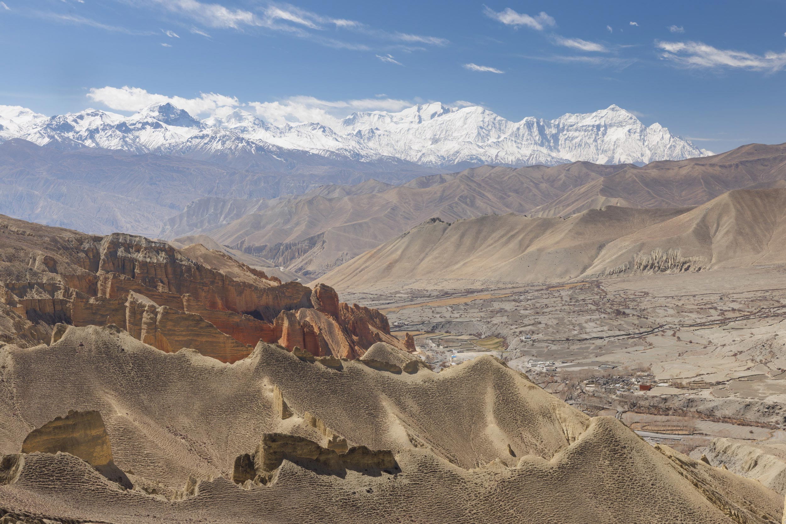 What makes this region of Nepal even more extraordinary is its climate. The towering Annapurna and Dhaulagiri ranges form a natural barrier, creating a rain shadow that keeps Upper Mustang dry for most of the year. Unlike the monsoon-soaked hills of central Nepal, Mustang’s terrain resembles the high deserts of Tibet with its windswept valleys, ochre cliffs, and dramatic rock formations shaped by centuries of erosion. It is an otherworldly landscape, stark yet breathtakingly beautiful.